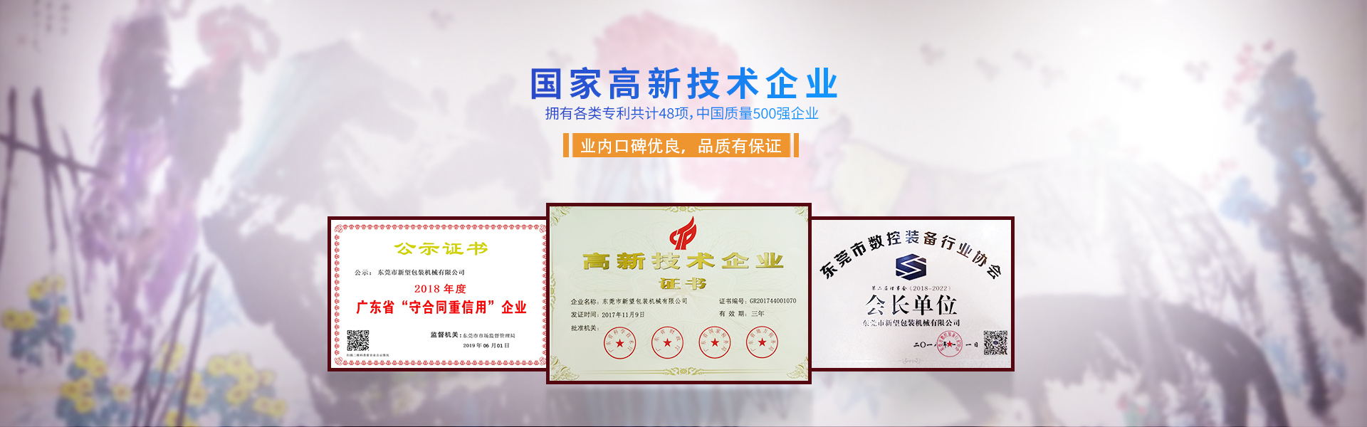 新望機(jī)械成立于1998年,位于東莞市東部工業(yè)園區(qū)的中心地帶——企石鎮(zhèn)東平村,交通方便、環(huán)境優(yōu)美舒適、視野開闊。公司注冊(cè)資本2000萬(wàn)元,擁有辦公室、廠房等18,000多平方米。已通過(guò)ISO9001:2015國(guó)際質(zhì)量管理體系認(rèn)證,擁有國(guó)家各類專利共計(jì)58項(xiàng)。是東莞市企石鎮(zhèn)工商聯(lián)副會(huì)長(zhǎng)單位、東莞市企石鎮(zhèn)文學(xué)藝術(shù)界聯(lián)合會(huì)副主席單位、東莞市環(huán)保包裝行業(yè)協(xié)會(huì)副會(huì)長(zhǎng)單位、東莞市數(shù)控裝備行業(yè)協(xié)會(huì)第二屆會(huì)長(zhǎng)單位、廣東省包裝技術(shù)協(xié)會(huì)常務(wù)理事單位、廣東省膠粘劑行業(yè)協(xié)會(huì)理事單位、廣東省著名商標(biāo)企業(yè)、國(guó)家高新技術(shù)企業(yè)。